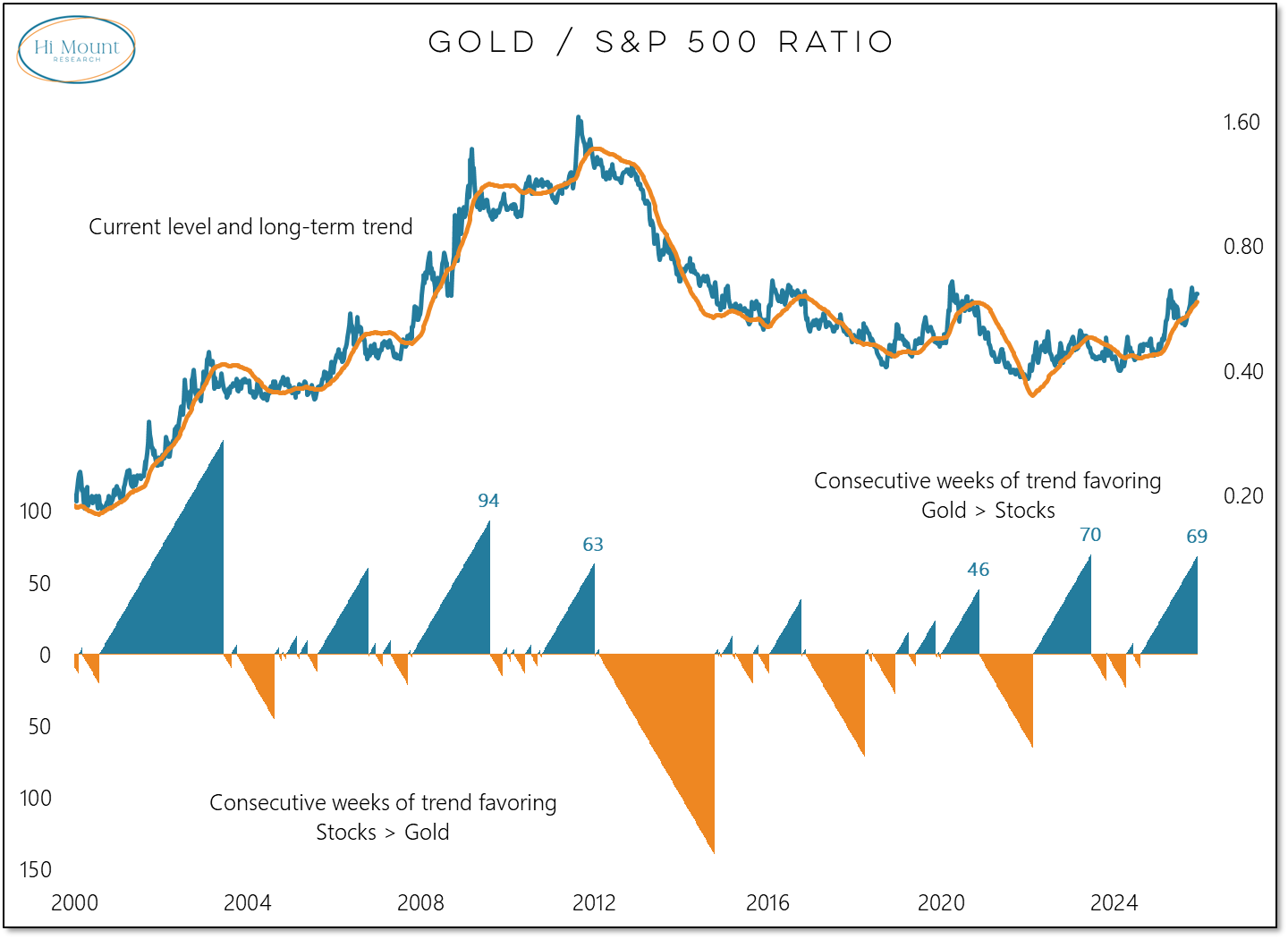 Gold is approaching its longest period of sustained strength versus stocks in more than a decade. The ability (and willingness) to switch between stocks and gold has historically been a valuable (though often overlooked) asset allocation option.