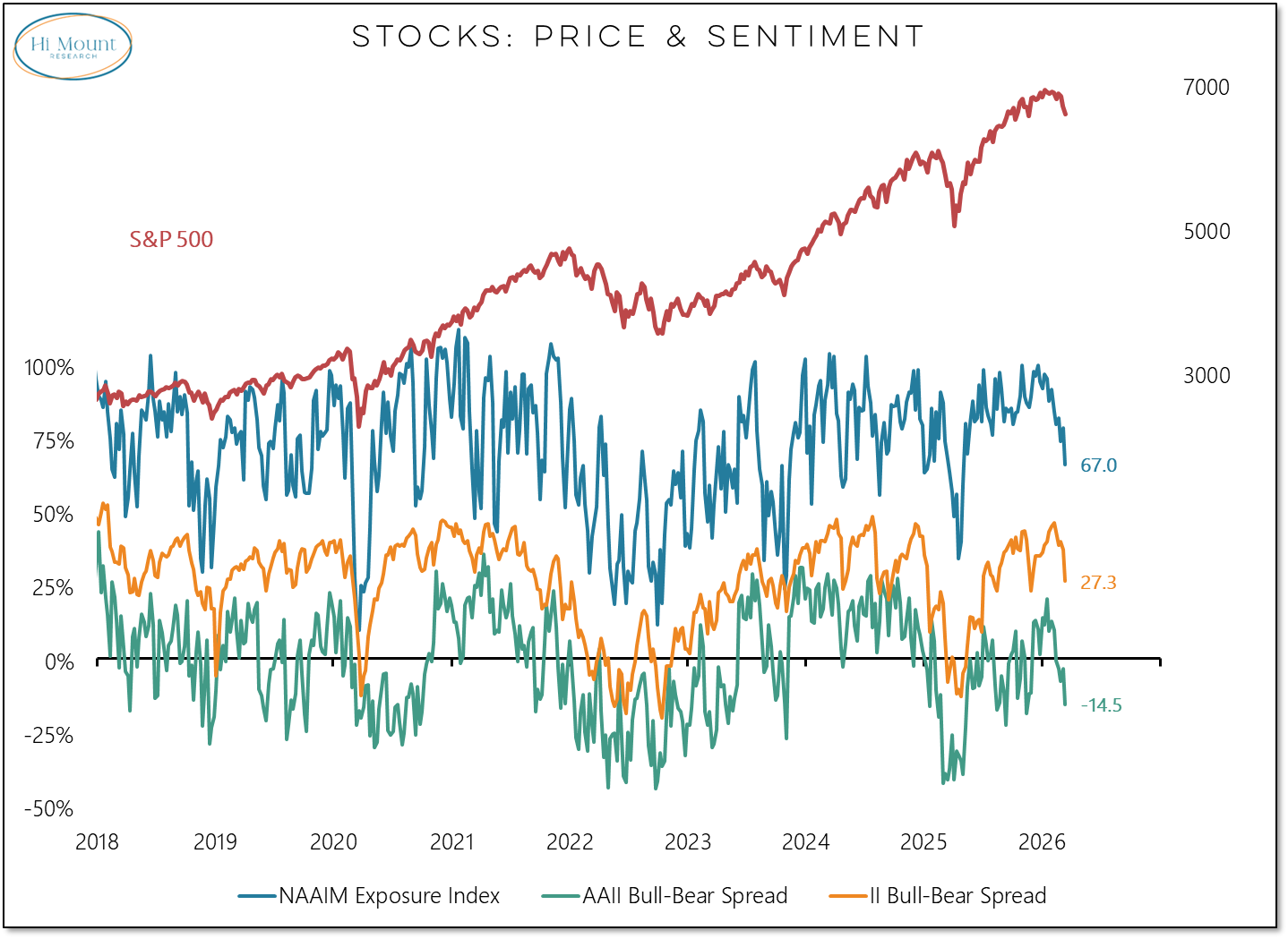 We could add to this analysis evidence that bulls are just now in the early stages of heading for the exits. Sentiment is deteriorating but nowhere near washed out. Talk of sustainable lows appears premature at this point.