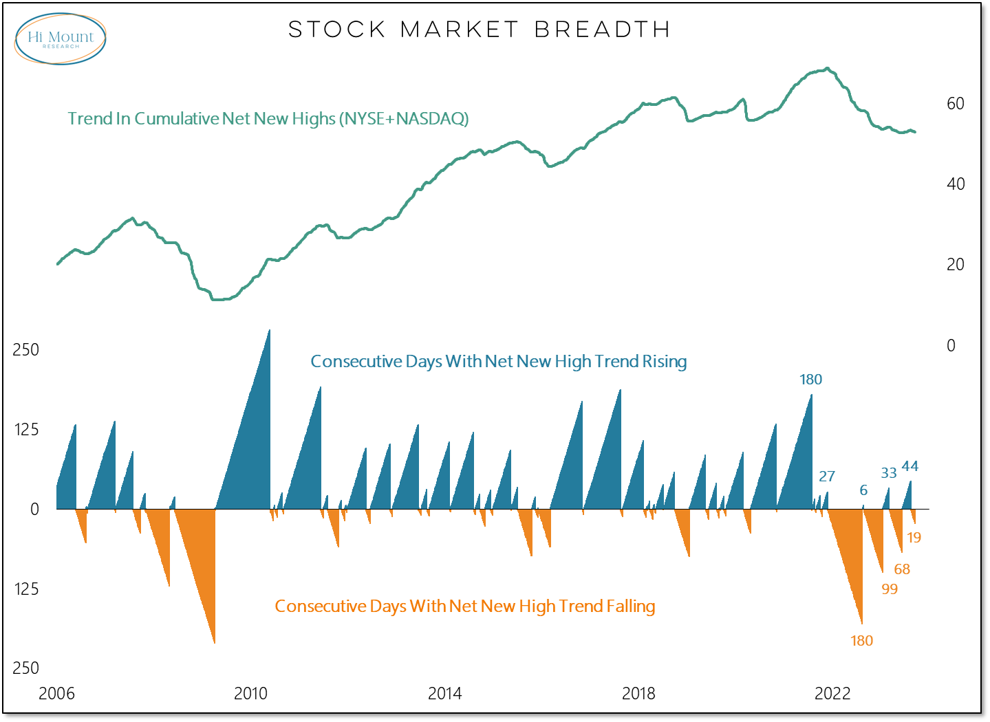 More Context: The market right now is exhibiting neither fear (elevated VIX) or strength (new highs > new lows). When that has been the case over the past two years, the S&P 500 has fallen 16% (versus a 22% gain in that time period in the presence of either fear or strength).